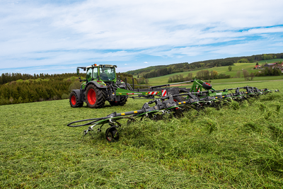 Une fois la coupe terminée, l'herbe doit être retournée rapidement et proprement. Pour cela, Fendt propose également deux gammes de produits : Les faneuses Fendt Lotus et Fendt Twister convainquent toutes deux par leur technique innovante, leur grande efficacité et leur utilisation confortable. Le résultat est une force de frappe maximale sur une largeur de travail maximale de 12,70 mètres.