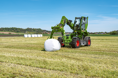 Pour finir, les balles sont emballées et placées avec le Fendt Cargo. Le chargeur télescopique combine les avantages d'un chargeur télescopique conventionnel avec ceux d'un chargeur sur pneus pour une hauteur d'empilage allant jusqu'à 7,7 mètres. La sécurité et la visibilité à 360° sont assurées par la cabine surélevée et suspendue.