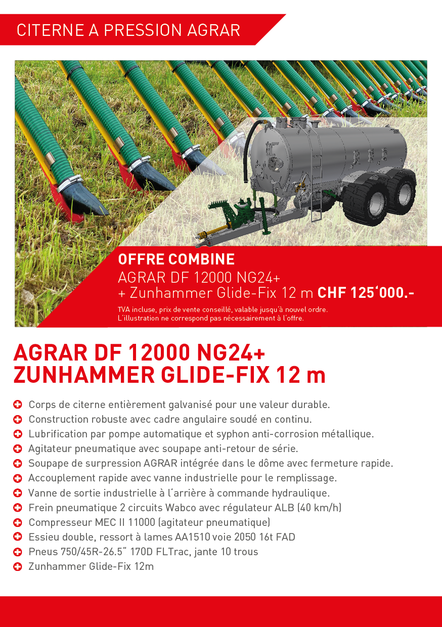 Nos deux citernes à pression de AGRAR DF 10500 et DF 12000 de la nouvelle génération NG24+ avec des rampes à patins correspondantes à une offre combinée attractive.