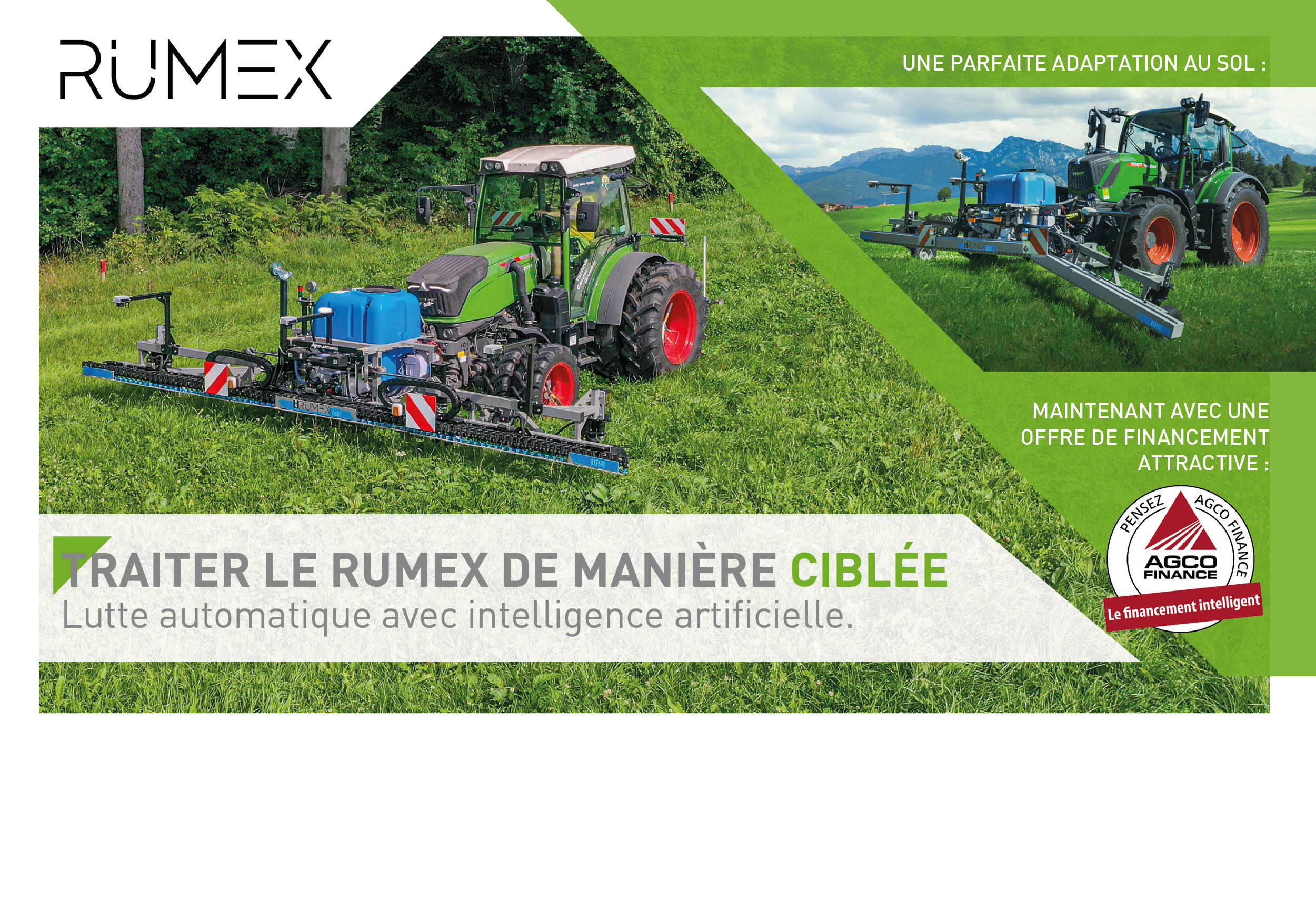 La lutte contre les rumex dans les prairies représente actuellement une activité très coûteuse en personnel et en temps. Afin de simplifier cette tâche et de réduire au maximum les produits phytosanitaire ainsi que la pollution de l’environnement l’entreprise RUMEX GmbH a développé un pulvérisateur reposant sur l’intelligence artificielle pour la lutte contre les rumex.